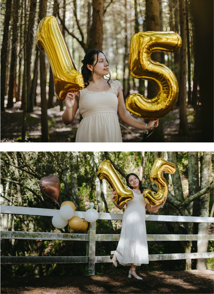 En este día obtengo quince rosas, que significan 15 nuevos sueños. Un mundo nuevo comienza y mis emociones surgen de nuevo. Quiero que estés a mi lado en este momento. Bailemos un vals en la pista y brindemos, que noches como esta no se repiten todo el tiempo.